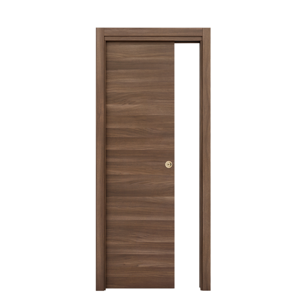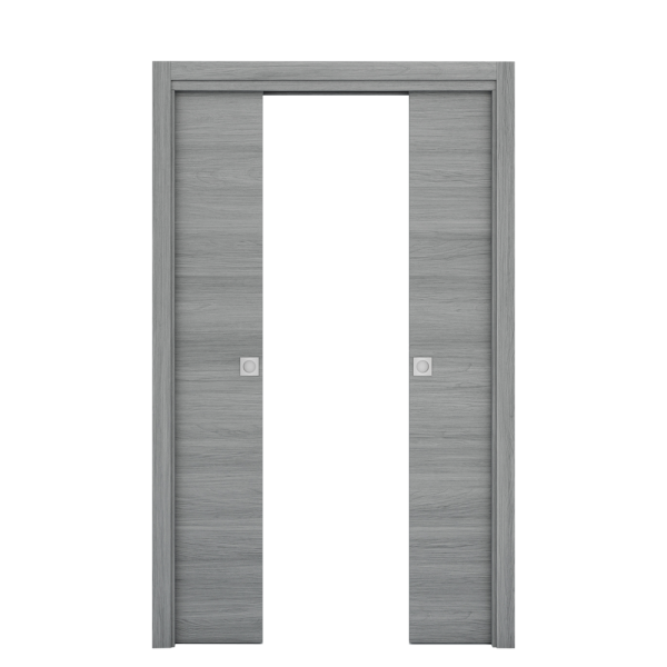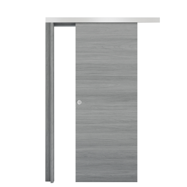 Vrata i okvir obloženi su visokokvalitetnom CPL/laminat oblogom s hrapavom teksturom i vodoravno položenim godovima. Dovratnik od sendvič ploče jele/smreke i MDF-a s ukrasnim lajsnama širine 8 cm osigurava stabilnost i elegantan izgled, dok krilo vrata debljine 41 mm s ispupom od kartonskog saća pruža dugotrajnost. Vrata se isporučuju s bravom ili samo s poteznom ručkom, u standardnim dimenzijama krila 65/75/85/95 × 200 cm, uz mogućnost prilagodbe zidnim otvorima širine 70–100 cm i visine do 210 cm, te regulaciju štoka i dodatne anekse za debljine preko 17,5 cm.