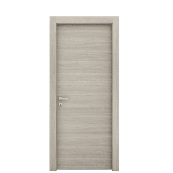 Fango vrata obložena su visokokvalitetnom CPL/laminat oblogom s izraženom teksturom pora i vodoravno položenim godovima, što im daje suvremen i elegantan izgled. Krilo debljine 41 mm s ispunom od kartonskog saća osigurava čvrstoću i dugotrajnost, dok dovratnik od sendvič ploče jele/smreke i MDF-a s ukrasnim lajsnama širine 8 cm pruža stabilnost i vrhunsku završnu obradu. Vrata su opremljena standardnom mehaničkom bravom (ključ, cilindar ili WC), uz mogućnost ugradnje magnetnih i Mediana brava. Dostupna su u standardnim dimenzijama, s prilagodbom zidnim otvorima i izradom po mjeri do širine 100 cm i visine 210 cm, uz regulaciju štoka od -10 do +15 mm. U ponudi su i protuzvučne izvedbe do 37 dB s atestom, vrata s pripremom ili ugrađenim staklom (obično, lamistal ili kaljeno), kao i dodatne opcije poput spuštajuće brtve, ventilacijske rešetke i ukopnih AL lajsni. Vrata su dostupna i u kliznoj varijanti (u zid ili na zid) te s skrivenim spojnicama. Isporuka je u roku 7–30 dana, vrata i štok dolaze zasebno pakirani, uz garanciju od 24 mjeseca, a cijena ovisi o debljini štoka.