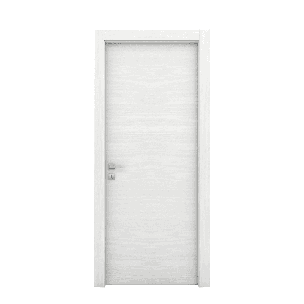 Ella Bianco vrata obložena su visokokvalitetnom CPL/laminat oblogom s 3D teksturom vodoravno položenih godova, što im daje suvremen i elegantan izgled. Krilo vrata debljine 41 mm s ispunom od kartonskog saća osigurava čvrstoću i dugotrajnost, dok dovratnik od sendvič ploče jele/smreke i MDF-a s ukrasnim lajsnama širine 8 cm pruža stabilnost i vrhunsku završnu obradu. Vrata dolaze sa standardnom mehaničkom bravom (ključ, cilindar ili WC), a dostupne su i magnetne i Mediana brave. Standardne dimenzije krila su 65–95 cm širine i 200 cm visine, uz mogućnost prilagodbe zidnim otvorima do 100 cm širine i 210 cm visine. Vrata i štokovi isporučuju se zasebno u kartonskoj ambalaži, s garancijom od 24 mjeseca i rokovima isporuke 10–25 dana. U ponudi su i protuzvučna vrata do 37 dB, vrata s pripremom ili ugradnjom stakla (obično, lamistal ili kaljeno), klizne izvedbe (unutarnje ili na zid), te dodatne opcije poput spuštajuće brtve, ventilacijske rešetke i ukopnih AL lajsni.